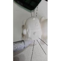 Modifications introduced to make it printable. For the mustaches make drills in the marks and paste a bit of black filament extracted from the nozzle. The images correspond to an impression scaled to 150%.