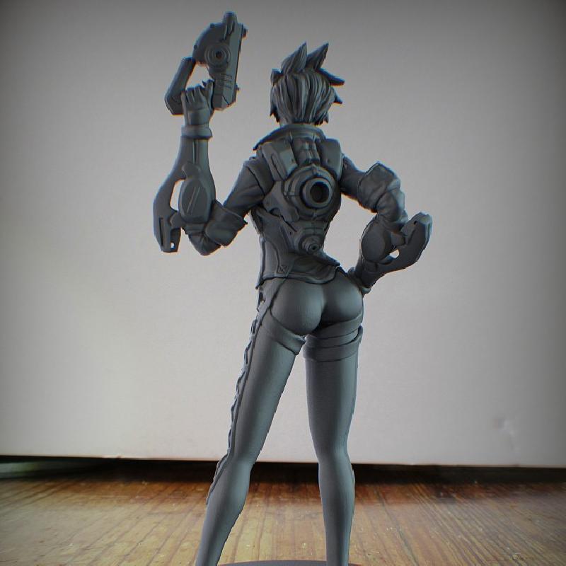 The character, who is of British origin, has been noted by video game outlets to be a peppy and energetic character. In regards to her gameplay mechanics, Tracer is one of the game's fastest characters in terms of speed, but weakest in terms of health. She makes use of her speed through teleportation and time traveling abilities that are caused by an in-universe accident, which left her unable to maintain a physical form in the present time, until Winston invented the chronal accelerator, a device allowing her to control her physical form.