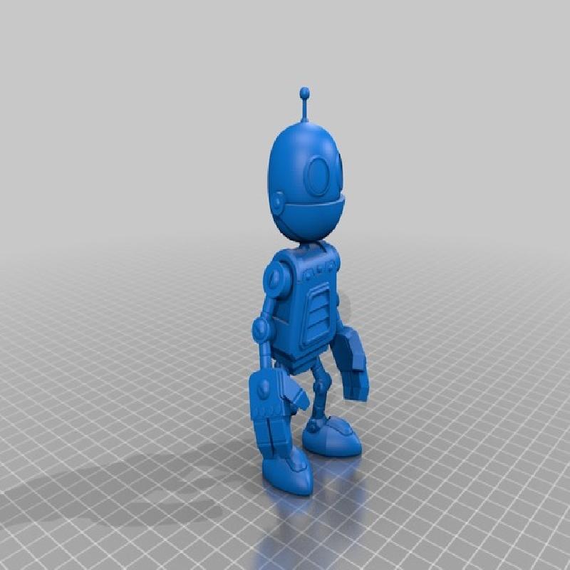 This is a 3D printed Clank model from the video game and movie Ratchet & Clank. At the scale given, it'll end up being about 6 inches tall. I created this model in Fusion 360 and printed it on my Robo 3D R1 printer using Hatchbox White PLA.