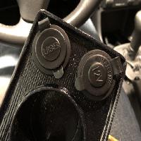 A cupholder in the center console to a Volvo V40 with 29mm hole for power outlet.