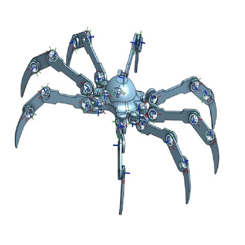 An assembly-required model of a spider type thing. This was a warmup for working on a legged servo robot. The pieces are joined with a little friction fit joint.