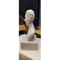 The plinth with name plate were added to the original bust in Tinkercad, then the entire mesh was run through MeshMixer to fix some non-manifold areas and a few other minor issues. The original but had an issue where the ears were too thin to be sliced properly, so I had to thicken them up in MeshMixer. Had to jump back and forth between MeshMixer and my slicer a few times to get it right.