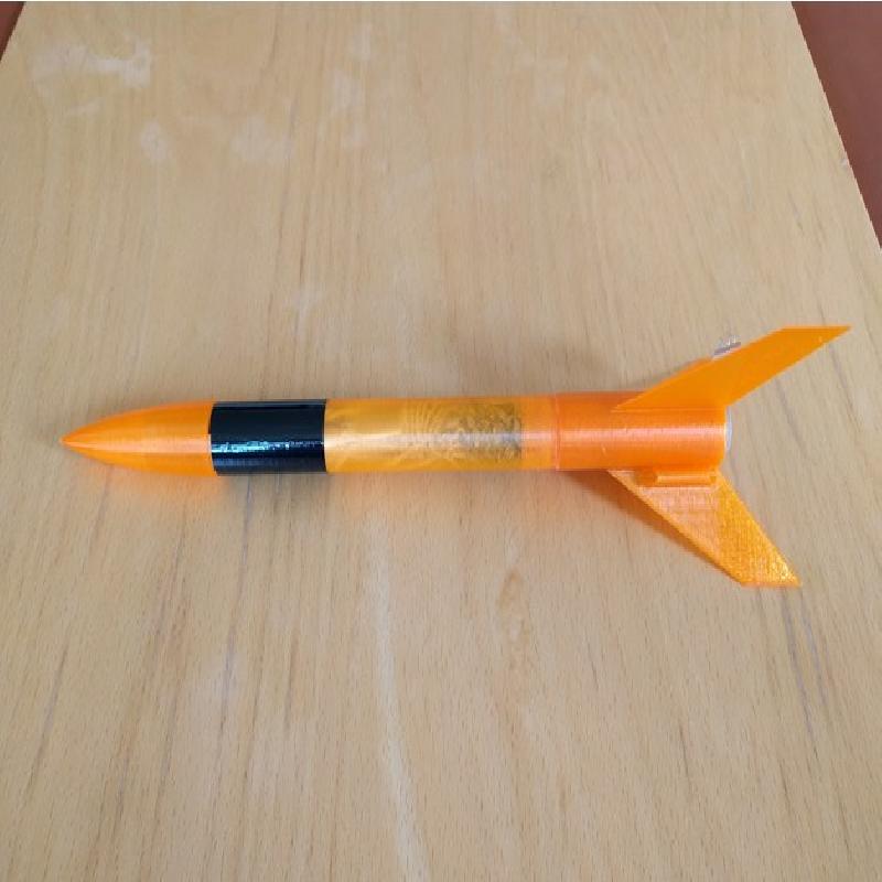 You can use either ABS or PETG for printing. I used ESun PETG translucent orange for my 'full print' version. For ABS I've found the FoxSmart ABS to be a good and cost effective filament. The version built with a standard body tube has red FoxSmart ABS for nose cone and fin canister. The 'thick' version of the fin canister has slightly thicker fins for more durability.