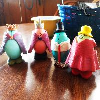 Here I made some accessories that the boys helped me paint for our Easter eggs. I made a little dress, a shirt and tie, a top hat, a crown, a tiara, a ladies hat, some capes and a couple pairs of shoes. Should have printed a 4th pair of shoes, but aluminum foil worked pretty good, too! I drew some smileys on a couple of the eggs and my little one attempted to draw some as well. It was one happy egg family! I already have ideas to make more for next year!