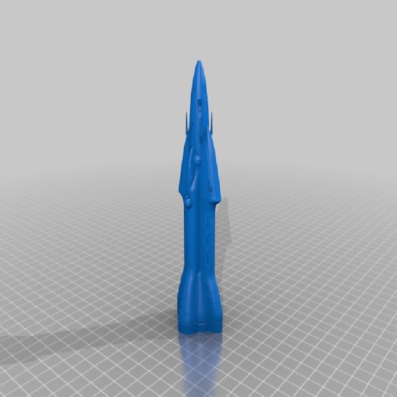 -The larger detailed version starts with an L in the file name (with 2 versions of the main body = one piece or split into 2 pieces for ease of printing). You'll need to print out 4 engines, 2 horizontal fins, and 2 vertical fins