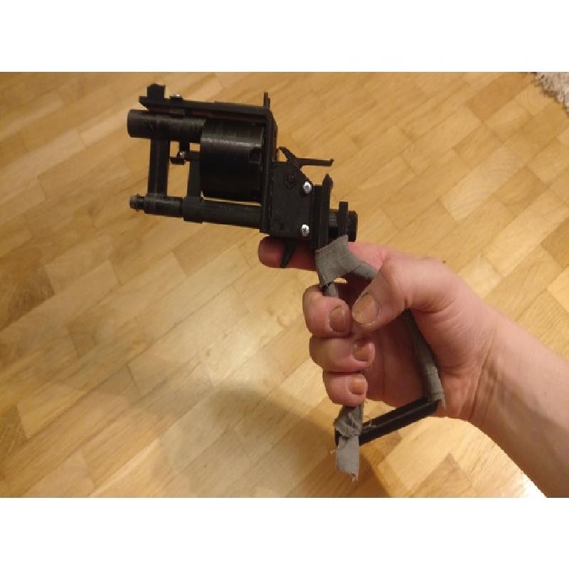 I redesigned the cylinder and created some 1:1 .45 ammo, and some few other parts. I also printed them in 54% scale.