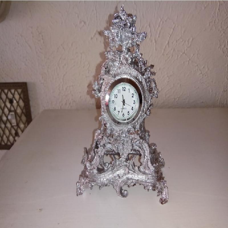 I printed it in ABS then sprayed it with Primer then with Shiny silver paint. If you print in another material you may have to adjust the size depending on your material's shrinkage so that the clock parts fit snugly of course.