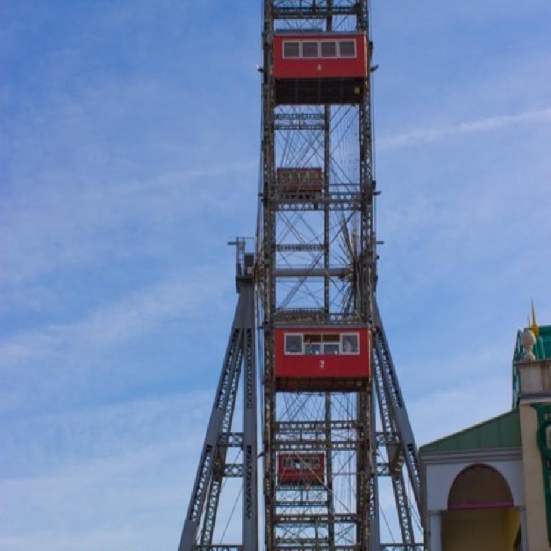 The wheel was built in 1897 and was the worlds tallest wheel till 1985 (Now it is the Cosmo Clock 21 in Yokohama). Originally the wheel had 30 gondolas, but in the second world war the wheel was severely damaged and only 15 gondolas were rebuild to keep the cost of maintenance low. Since then it is still operated that way.