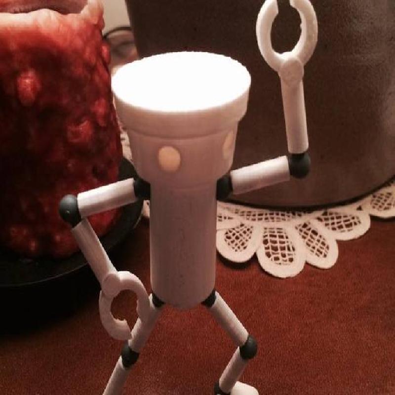 What is included in the file are the appendages of the robot. The joints are Revoltech 6mm joints, and have to be purchased seperately. I recommend using the website http://castingcave.ecrater.com/ to find these. The model also features a hole on the back for the use of a stand, so that Chibi Robo can be posed in different ways that don't have to support his larger head. The stand works best with the Bandai Hobby Action Base 2 Display Stand (1/144 Scale) which can be found on Amazon. For the eyes I would recommend using black clay to fill the eye hole, and also shape the eye correctly. Finally, the chord can be snipped off of any cheap alarm clock you can find at goodwill.