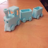Tren de juguete, pensado para rodar de forma independiente y en vías. Piezas desmontables, excepto el maquinista.