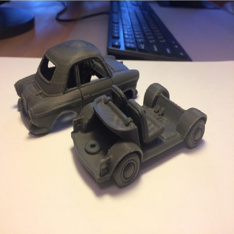 9cm in length. Orange one printed with 0.2 layer height, grey one with 0.1. If printed at 0.1 layer height, wheels do rotate...somehow.