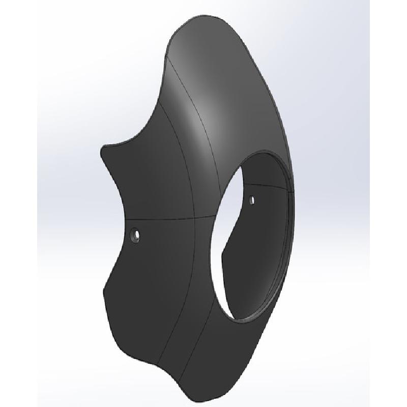 Moped Fairing with a 5.25" Diameter headlight opening. Support is already built into this model. Prints with a thin film in the headlight opening and the base of each half. You will need to cut this material away, bondo and sand smooth. Prints in two halfs, pins and glues together.