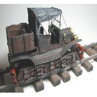 This model is about 150mm long and is designed to fit a track with 36mm between the inside surfaces of the two rails. In other words it is compatible with most of my other rail-mounted models.