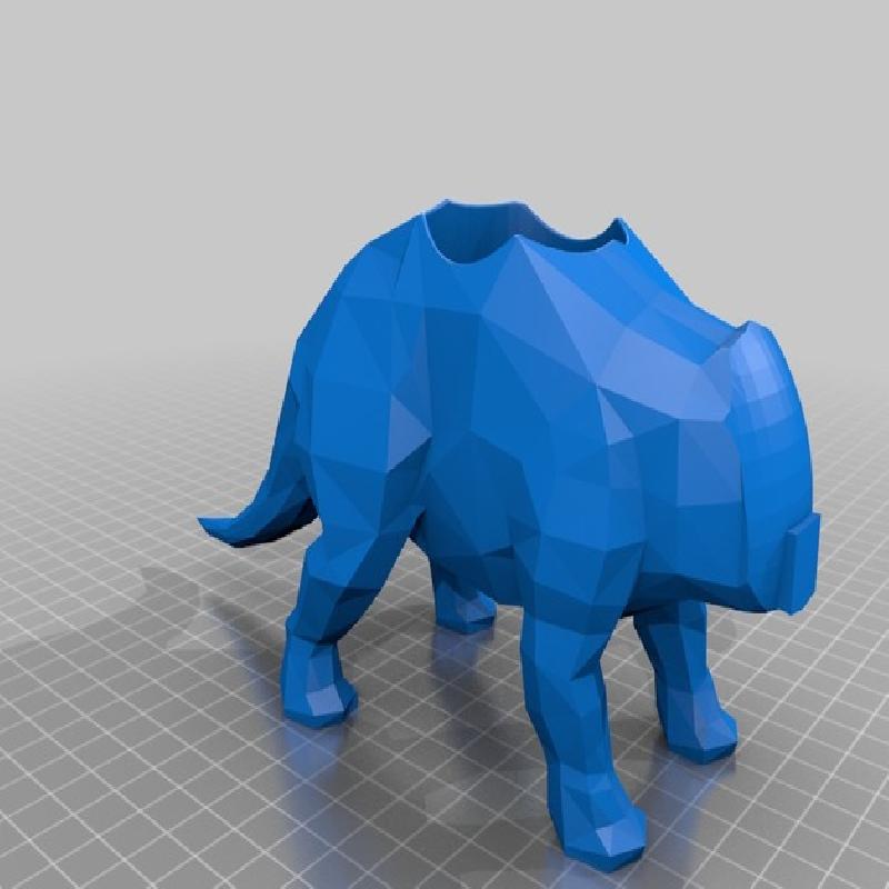 Tricerapots is a remix of a low poly model of a triceratops. I put a hole in it sized for a small air plant and cut the head off so that it could print separately with less support material.
