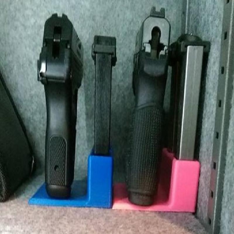 This is a handgun and magazine holder. Some call it a RANGE TRAY. I've used mine to organize our gun safe. This was specifically designed for a Smith and Wesson M&P Bodyguard 380. Also works on most other small handguns. Ruger LCP and Phoenix Arms HP22. I couldn't figure out how to attached the solidworks file so that you can download and edit to make for other size guns.