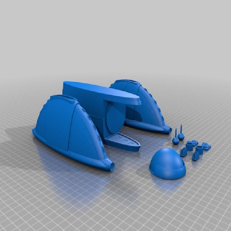 A Tinkercad take on one of Mothership Zeta's exploration spaceships.  This is my re-imagined version of the crashed space craft from Fallout 3.  I've taken some liberties with the design, but the basic idea is the same. The parts are separated for easier printing, but I did not index the body, so you will have to take some care when assembling.