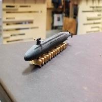 I printed the sub out of Black ABS and then the dry dock platform out of Wood Filled PLA. I used MEK to secure the ABS parts together.