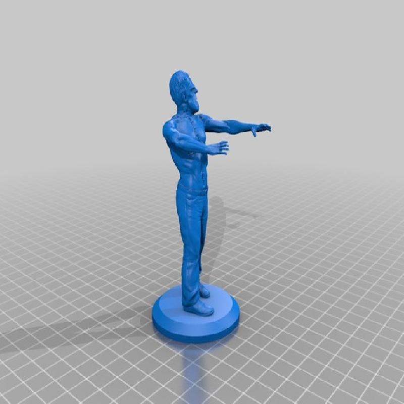 I made this for my dad for Halloween stuff. I took a zombie, chopped off his head, took a different head and sculpted it on. The second fine has a head that is 90% the original file. If you want it 28mm you need to scale it down to 2%. The picture is of one that is not done being painted. So if someone would like to print one and paint it. Then post it as a make, I'll use your picture of it. Happy Halloween!
