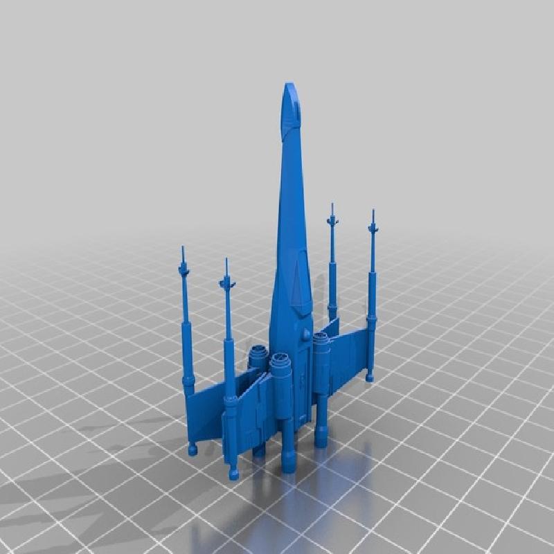 Took another X-wing model and modified it to strengthen the wings and blasters. This makes it rugged enough to be used as a toy, but your own print settings affect this. Use your own best judgement, and obviously don't allow small children to put 3d printed parts in their mouths.