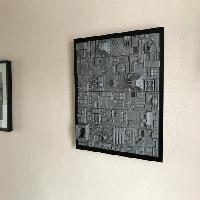 The photos show all pieces printed at 50% and assembled into an IKEA 50x50cm frame.