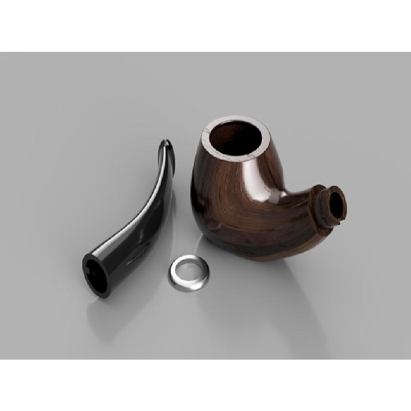 The pipe is around 15cm at its longest point. It was designed using some reference images in Fusion 360. It comes in three parts that press-fits together without glue or you can print it assembled. The pipe is designed as a prop and should not be used to consume any substances or be placed near an open heating element or flame.