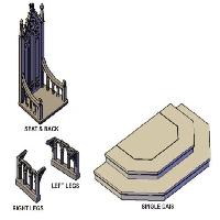 The model throne is printed in three parts: the seat and back in one piece, and separate right and left side legs. There is also a dais for the throne to stand on, and a double-width dais for 'his and her' thrones.