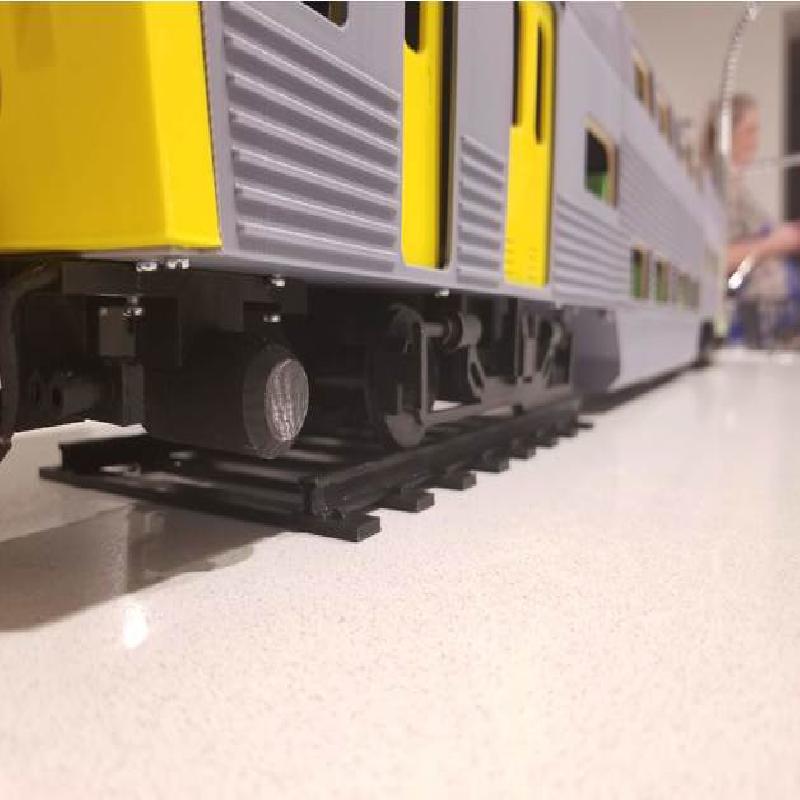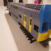 A roughly 1:20 scale model of a NSW Trains V Set carriage (Blue Mountains train). Model is 1 meter long. Contains internal lighting, reversible seating (the most important feature of a Sydney train) and a detachable cutaway where the internal seating can be viewed.