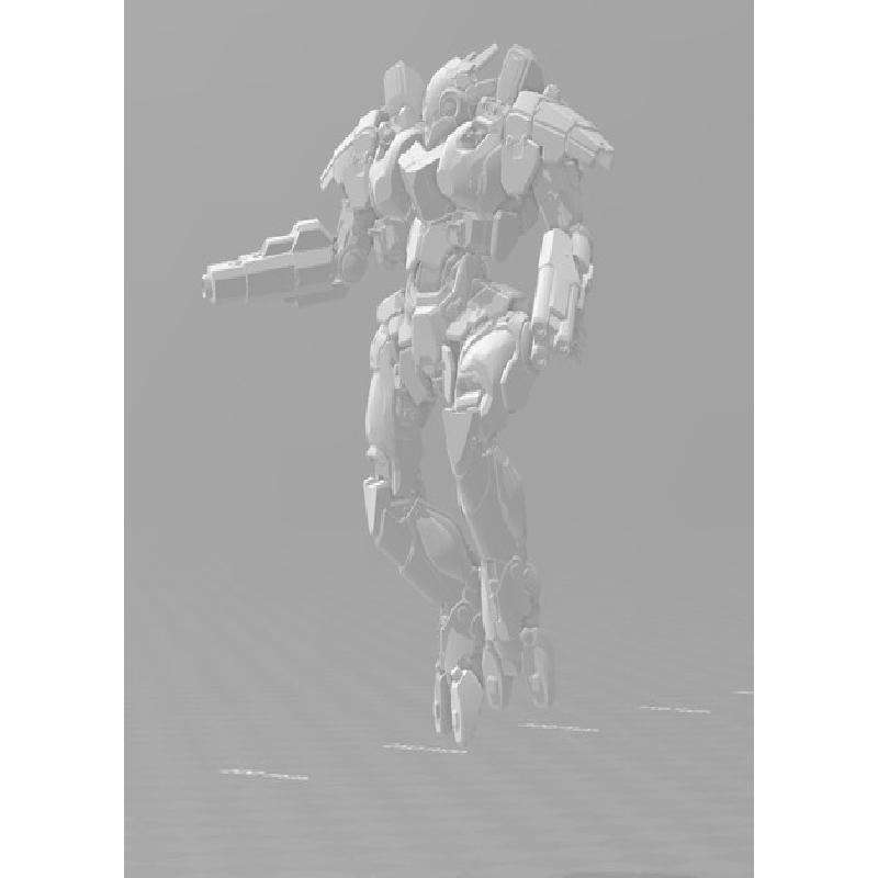 Scaled to MW:DA scale. The jumping pose means you'll have to mount it on a stand. I've deleted, added, and moved some things around so this model is not 100% what you see in-game.