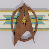 Model of the uniform badge from the Star Trek: The Wrath of Khan era "Monster Maroon" uniforms. This model was eyeballed looking at screen used props so the dimensions may not be accurate!