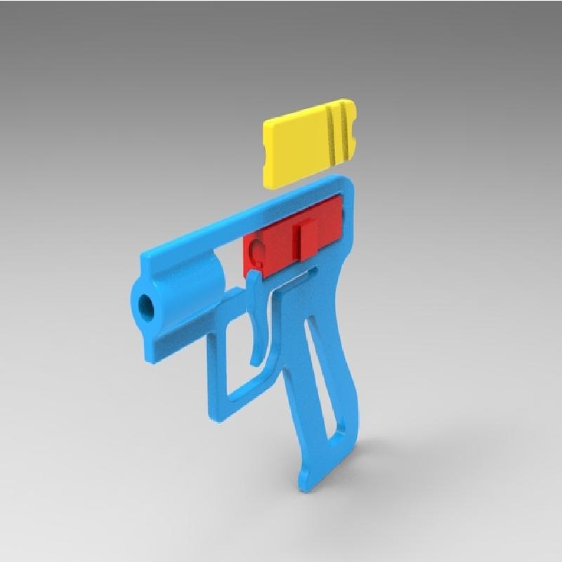 the slide is moved forward via a rubber band attached at the end of the slide and connects at the trigger guard.