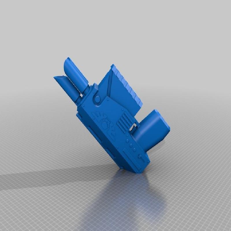 Need some solid firepower to take out your chosen heretics? is a regular old laspistol not doing it for you? How about something with a bit more punch? how about a triple barrelled laspistol!?!?! The design of the clip allows the bottom of the clip to also be held like a 2nd grip, allowing you to hipfire on auto or do a powerful blast firing all 3 barrells at once!