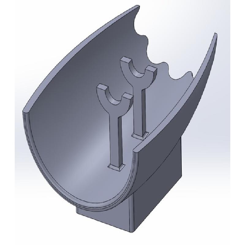 A three part model of a jet engine desk toy with integrated stand and free spinning axle with attached fan blades.