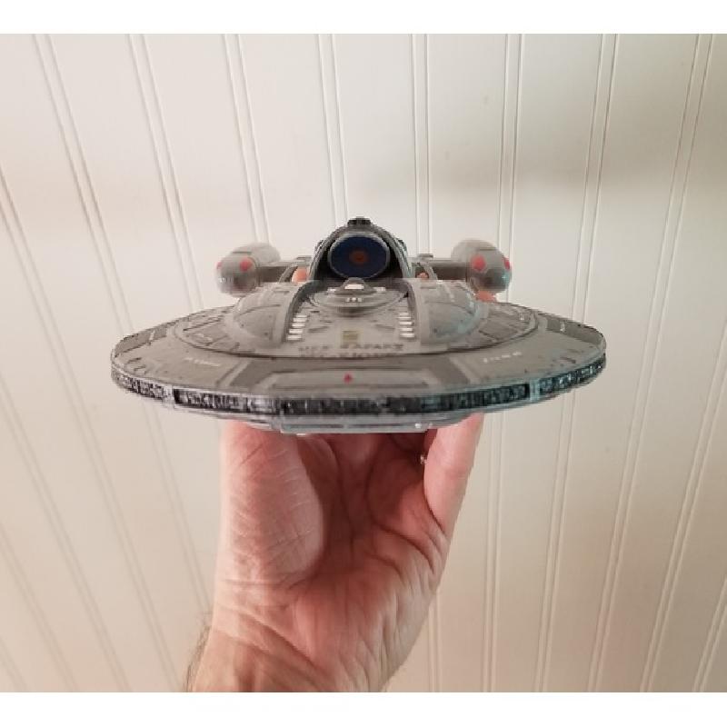 I originally designed this ship as the version 2 model. The plan was to go against the rules and put the deflector on top and the shuttle bay on the bottom. I printed a 12 inch model of the version 2 files. When I glued the halves together I found that I liked it better with the back half upside down (shuttle bay on top like a normal Trek ship). I fixed the model’s orientation and labeled it version 1.