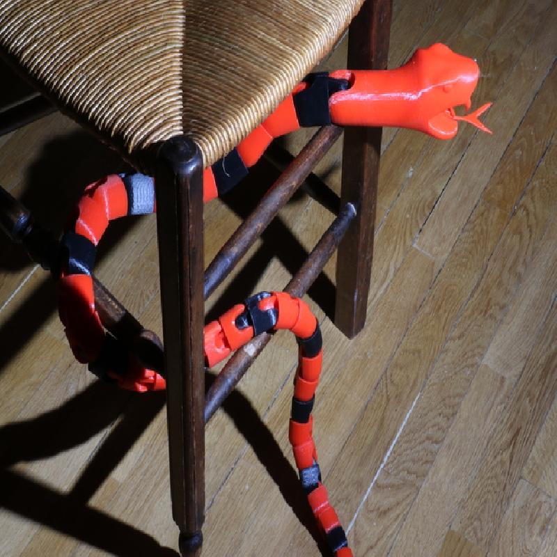 I think about reuse the octopus ball-jointing system for a quite long time. And I need something to scare my cat visiting my neighbour at my secondary residence because she's scared by cat. Hopefully I notice that may cat is scared by snake like object.... Got a solution, just need a snake head, Thingiverse is done for this!