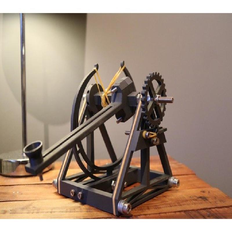 Catapult inspired by Leonardo da Vinci, more powerful than a simple desk toy, roughly 110mm tall (frame) Easily printed within 24 hours, have fun!
