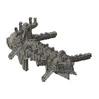 I shrunk the antennas on the bridge, to ease printing. I included the gun from the Chaos Raiding Ships by Mkhand Industries.