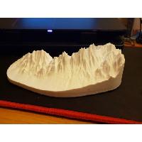 This is a topographical model I made of the Organ Mountains in Las Cruces, New Mexico using a website called terrain.party. I then took the "heat signature" images and imported them into Blender to form and refine the images into a 3D render. From there, I imported the Blender rendered model into Fusion 360 and added a base and cut the curved shape and put in the lettering on the bottom of the model.