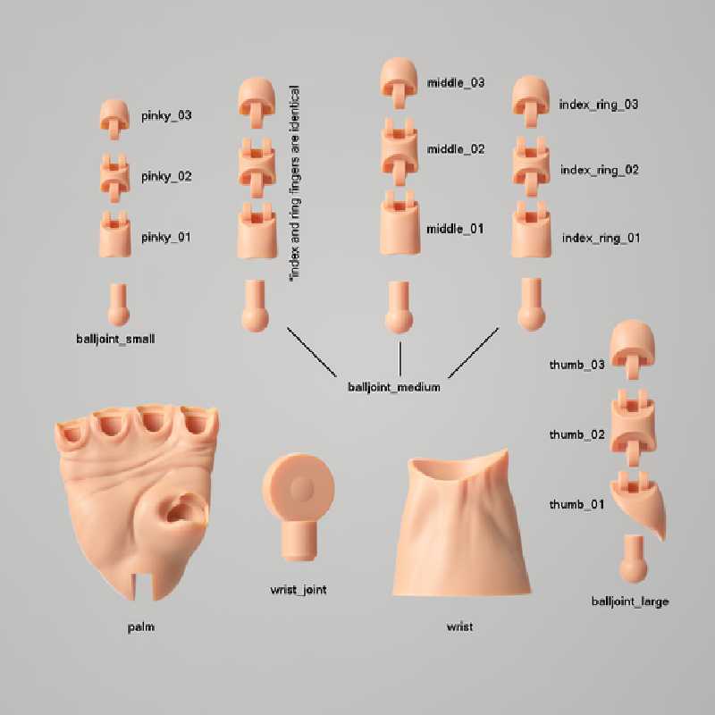 3D printed articulated poseable hand. Full credit goes out to user RIKKTHEGAIJIN for designing this over on Cults 3D.