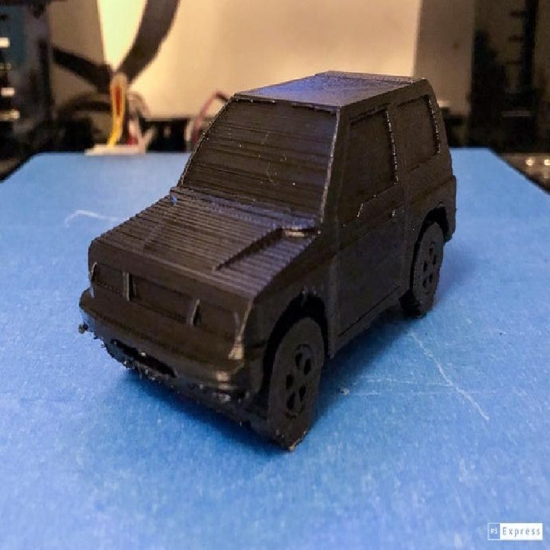 This was my first attempt modeling a car in AutoCAD and then 3D printing it. I based it on a Suzuki Vitara/Sidekick/ Geo Tracker. It's far from a perfect replica but I'm happy with it as of right now. It prints in place with moving tires. You'll have to wiggle the tires a bit after printing to get them to break loose and rotate.