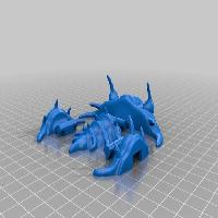 I've split the model into two prints, which are sized to fit onto a RepRap Huxley print bed. The pieces can possibly be rearranged to fit into a single Mendel print. The scale given in the STL files will produce an assembled Comura of 19cm long and 9.5cm wide at the head. I would suggest scaling this model to 100% or greater, as the chain clips might be too weak at smaller sizes.