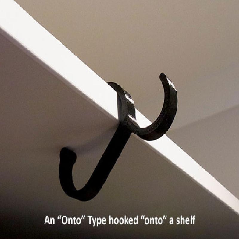 Make sure you scale your 'Handy Hooks to suit the things you want to hook them onto. The standard scale has an opening of 30mm. This will work on doors / shelves / walls / chairs etc. from 5mm to 30mm thick... some doors and walls are thicker so scale up to suit (i.e. 30mm standard size x 1.333 = 40mm if that width is required)