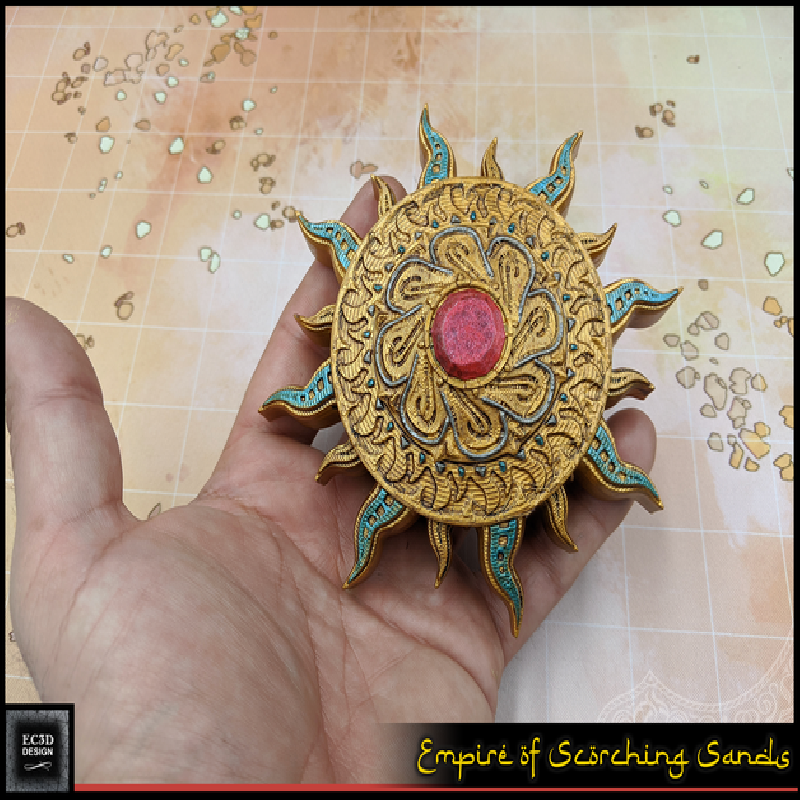 This is an easy-to-print "Sun Medallion".Use it in your campaign as a plot hook, magic item, or whatever else may suit yor fancy - and be sure to check out the Kickstarter for tons of awesome support-free minis and terrain items!