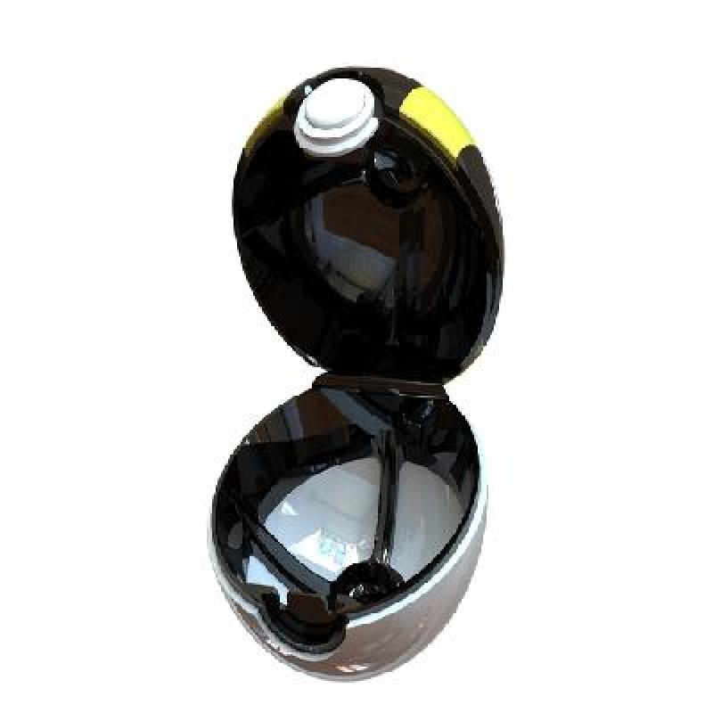 Fully functional UltraBall made to be an exact replica of the real thing! Uses only 3D printed parts and super glue yet has fully functional hinge and button which presses in and unlocks a catch to allow you to open it, using the flex in the plastic to act as a spring. Hinge opens to 90 degrees and stops like the real thing and does not stick out the back so cannot be seen, also just like the real thing. The button also hides its own mechanism from view adding to the authenticity. Parts have notches and grooves to ensure perfect alignment while glueing allowing you to have a perfect model with ease.