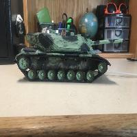 One of my first 3D Printing projects, a custom MBT based on the M1A2 Abrams, with some personal touches. Not a perfect design from a 3D-printing standpoint, as I didn't realize the importance of tolerances when I designed this, but it all still works.