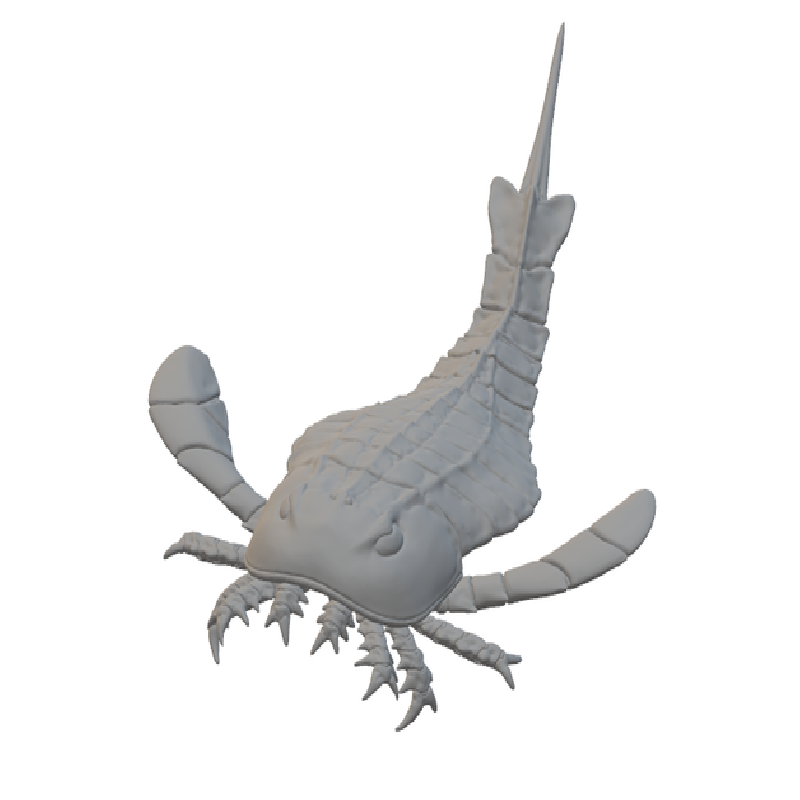 I inspired myself from the horseshoe crab to design this model, as it is the closest relative of Eurypterids that can be found nowadays.