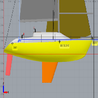 This is a fairly realistic model boat of a Dehler 34 sailing yacht (Van de Stadt, 1984). I owned and raced it for 5 years. It was fantastic. In order of adjusting its rating performance I created a 3D model for running naval technical calculations (hydrostatics, stability, VPP), from lines plans and a laser scan I performed. The hull is quite accurate, while the deck is not. Although it is more that sufficient for very large angles stability and water ingress calculations.