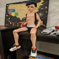 I really wanted to print a male doll, but I did not find an option that I would like. And I decided to make a modification of the chest and torso for the dolls what I find on this site. As a result, I got so carried away that I redid everything from scratch. My model still has same joins on neck, torso, foots and arms with other models but has slightly different proportions. All shoes, hair, eyes, clothes I did by myself. But it possibly buy too. I printed two sizes, original (1/3) and half of them (1/6) and both of them are work.