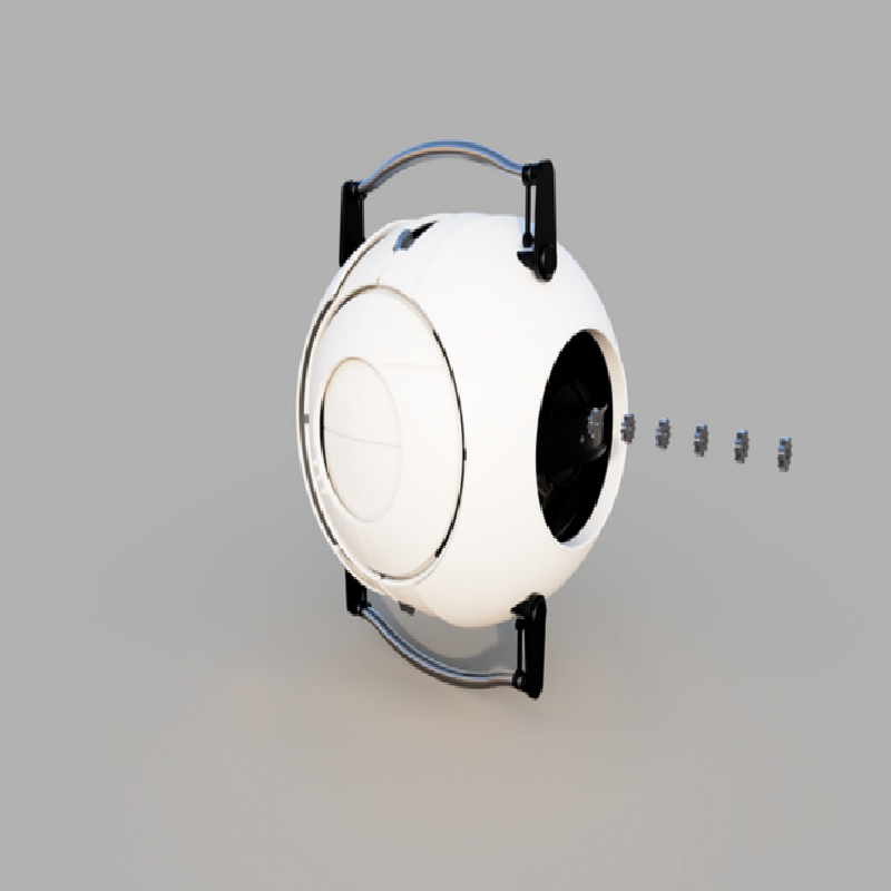 This is the most ambitious Portal 2 Personality Core ever attempted. 83 pieces to print. Took me over 24 hours to design in the course of four days. It has nearly every axis of movement that it does in game. Game accuracy is not lacking. Requires twelve servo motors, two geared hobby motors and several m4 screws (5mmm diameter, other screws could work.) The only thing I left out was the actual eye; I'm currently designing those separately and you could even design your own, if you'd like. The inside diameter of the eye gyro is 31.5mm. When I build it I'll include a video detailing everything's placement and such, but that might take the better part of a year to occur.