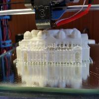 Imprimir 4 torres y paredes por separado para conseguir mejor acabado y luego pegarlas. Necesita raft para igualar las alturas con las paredes.