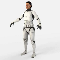 Storm trooper Iden, I found on another site. I exported it to OBJ and inverted the faces orientation. Nice model, can be rigged and moved to a pose.